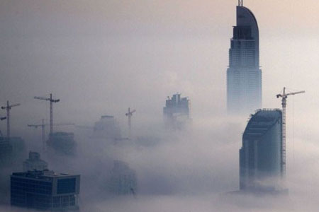 Dünyanın en yüksek binalarının bulunduğu Dubai, sisli bir havada fotoğrafçıların objektiflerine böyle yansıdı.