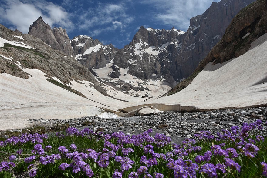 Çevresinde Türkiye'nin en yüksek ikinci zirvesinin yer aldığı Cilo Dağları'ndaki 4 bin 135 rakımlı "Uludoruk" ile buzulların bulunduğu 3 bin 500 rakımlı vadi, kar sularıyla oluşan akarsuların kenarında açan rengarenk çiçeklerin eşsiz manzarasıyla ziyaretçilerine ev sahipliği yapıyor.