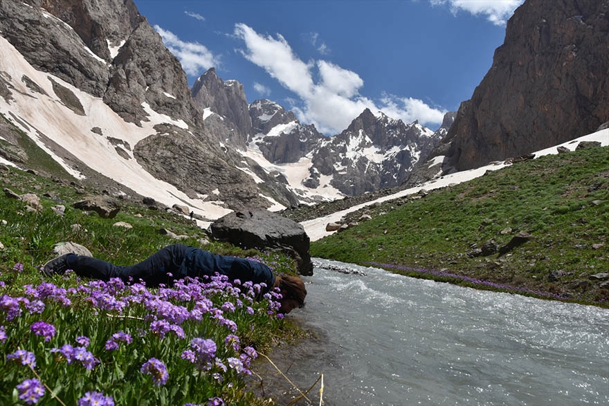 Vatandaşlardan Esat Kılınç da yeniden doğaya açılmanın mutluluğunu yaşadıklarını ifade ederek, "Uzun süredir evden çıkamıyorduk. Burayı görmek gerçekten güzel. Şu an Cilo Dağları'ndayız. Yukarımızda Cilo buzulları var. Bir tarafta Türkiye'nin en yüksek ikinci zirvesi yer alıyor. Hemen yanında başka yüksek zirveler var. Buzulların olduğu alan tamamen karla kaplı. Burası bahar ile kışın bir arada yalandığı harika bir yer."