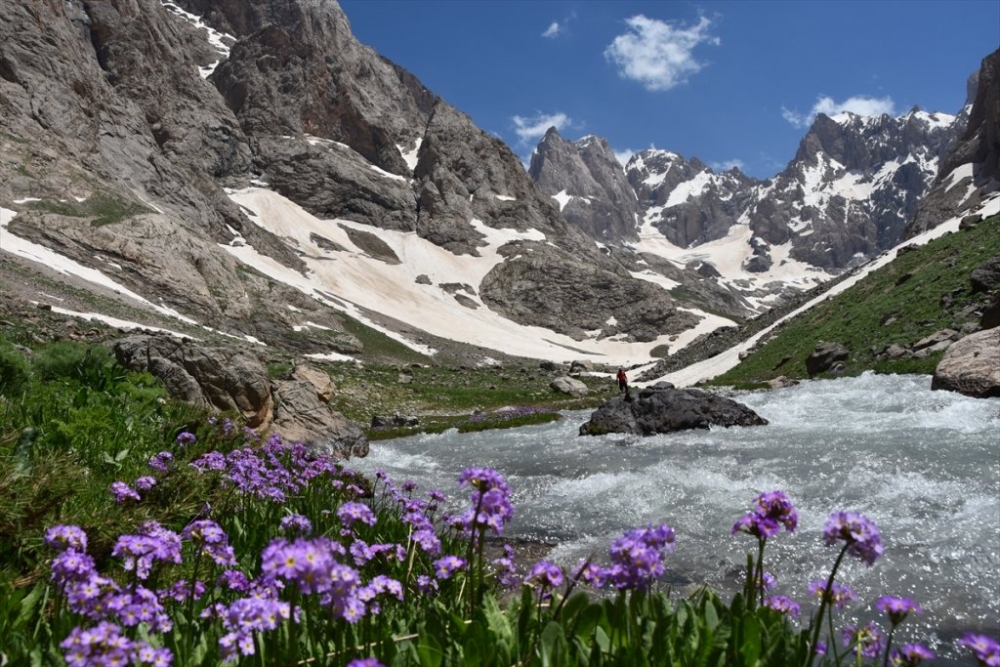Türkiye'nin en yüksek ikinci zirvesinin yer aldığı Cilo Dağları'ndaki 4 bin 135 rakımlı "Uludoruk" ile eteklerindeki buzullar, kar ve buz sularıyla oluşan şelaleler ve Sat Buzul Gölleri, eşsiz manzarasıyla doğaseverlerin uğrak noktası haline geliyor.