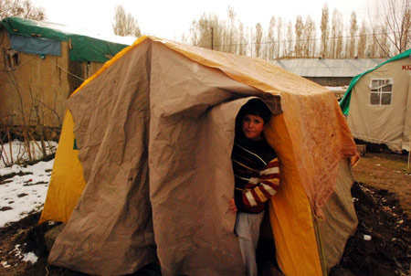 Van'ın Erciş İlçesi'nde meydana gelen 7.2 büyüklüğündeki depremin yaraları halen sarılmazken, depremin olduğu 23 Eylül'den bu yana çadırlarda yaşamlarını sürdüren çocukların kareleri depremin acı yüzünü ortaya koyuyor. Depremzede çocuklar, bazen bir cenaz