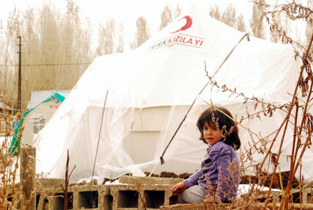 Van'ın Erciş İlçesi'nde meydana gelen 7.2 büyüklüğündeki depremin yaraları halen sarılmazken, depremin olduğu 23 Eylül'den bu yana çadırlarda yaşamlarını sürdüren çocukların kareleri depremin acı yüzünü ortaya koyuyor. Depremzede çocuklar, bazen bir cenazenin başında ağlıyor bazen de yemek sırasında bekliyor.