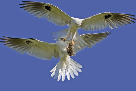 Doğa ve vahşi yaşam fotoğrafçısı Steve Shinn tarafından Kaliforniya'nın kırsalı Orange County'de çekilen bu kare bir tarla faresini avlayan erkek kuşun elinden avını almaya çalışan dişi kuşu göstermekte... Üstte bulunan dişi kuşun bir pençesiyle ava uzanması bir pençesiyle de erkek kuşun gagasından tutup onu etkisiz hale getirmesi muhteşem bir görsel şölen oluşturmuş.