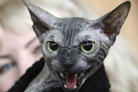 Kırgızistan'ın başkenti Bişkek'te bir kedi şovunda görüntülenen bu kedi görenleri hayrete düşürdü.Kedi şovuna katılan misafirler, Don Sphynx kedisini gördüklerinde gözlerine inanamadılar. Kediden çok ünlü bilimkurgu film karakteri E.T.'ye benzeyen kedi, şova katılan diğer kedilerin bir adım önüne geçti. Kırışık siyah derisi, boynuzu andıran kulaklarıyla korkunç bir görüntü veren kedinin, görüşünün aksine çok hareketli ve oyuncu olduğu görüldü.