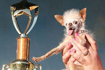 ABD'de dünyanın en çirkin köpeği olarak tanınan Yoda öldü.ABD'de dünyanın en çirkin köpeği olarak tanınan Yoda öldü.Evcil hayvanlarını kaybeden insanlar, genellikle sadık dostlarının "iyi ve sevimli özelliklerini" anlatır, ancak Yoda adlı köpek öldüğünde arkasında çok da hoş olmayan bir unvan bıraktı: "2011 Dünyanın En Çirkin Köpeği Yarışması Şampiyonu". Kısa ve yoluk tüyleri, ağzından sarkan uzun dili ve çırpı bacaklarıyla unvanının hakkını veren Yoda'nın, uykusundayken öldüğü belirtildi.