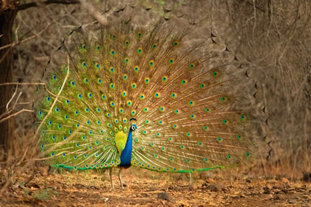 Bir tavus kuşu eşini cezbetmek için büyük süslü tüylerini sergiliyor. Vahşi Hindistan'ın Sırları'ndan bir görüntü.