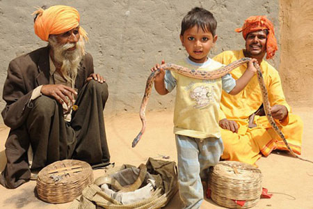 Hindistan'da büyücülük yaparak geçinen bir ailenin iki yaşındaki çocukları, kobra yılanını elinde tutarak objektiflere poz veriyor. Ne bir irkilme ne bir korku belirtisi var. Doğduğunda ailesi ile birlikte yılanları tanımış. Budh Nath torunlarına yılan dansı eğtimi veriyor, yüzyıllar öncesinden gelen bir geleneği sürdürmeyi amaçlarken. Doğal Hayatı Koruma Kanunlarına göre onların yaptığı yasak. Ama bu gelenek kanun dinlemiyor.