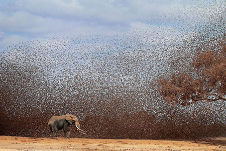Afrika'da su içmeye gelen bir filin etrafını aniden saran kuş sürüsü file korku dolu dakikalar yaşattı. Bu kareyi yakalayan Vahşi yaşam fotoğrafçısı Antero Topp, böyle bir kargaşayı daha önce görmediğini söyledi.