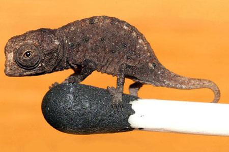 Bilim adamları, Madagaskar'da dünyanın en küçük bukalemununu buldu.Vücudu 16 milimetre olan bukalemun, kuyruğuyla birlikte en fazla 29 milimetre uzunluğa ulaşıyor. Alman Braunschweig teknik üniversitesi zooloji enstitüsü bilim adamlarından Prof. Miguel Vences, türün soyunun tükenme tehlikesiyle karşı karşıya olduğunu belirterek, minik bukalemunların ormanda yaprakların altında yaşadığını ve minik böceklerle beslendiklerini söyledi.