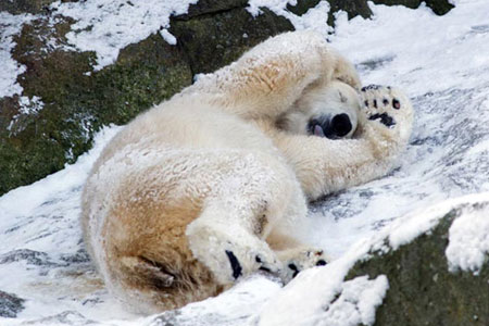 Finlandiya’nın kuzeyinde yer alan Lapland’daki Ranua Hayvanat Bahçesi’nin kutup ayısı, kış uykusundan biraz erken uyandı. Karların içinden ilk önce başı görülen erkek ayı, silkelenerek kar kütlesinin içinden çıktı.Sevimli kutup ayısı kısa bir yürüyüşün ardından tekrar şekerleme yapmaya karar verdi.