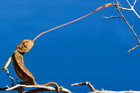 Kavrayıcı ayakları, kuyruğu ve dalda sakin duruşuyla dilini birden dışarı fırlatan bukalemun karşısında çekirgenin hiç şansı kalmıyor. Vahşi Yaşam Fotoğrafçısı Francisco Mingorance İspanya yakınınlarındaki ormanda bu muhteşem ana böyle tanıklık ediyor.