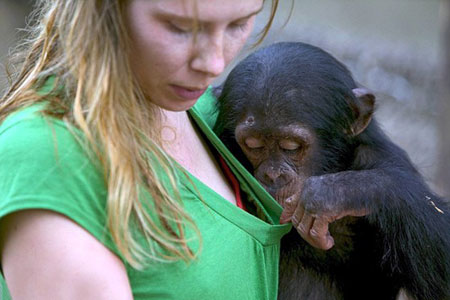 Fotoğrafçı Cyril Ruoso'nun yakaladığı bu an maymunların insanlara ne kadar çok benzediğine kanıt olacak cinsten. Nijerya'da bir hayvan barınağında çekilen bu görüntüde bakıcısını göğüslerine bakmaya çalışan orangutan yavrusunun ilginç anı fotoğraf karesine yansımış. Fotoğrafçı Ruoso o anı "Çok eğlenceli bir andı. Küçük maymunun yaptığı sosyal bir hareket. Bir başkasıyla ilişkiye geçme refleksi. İnsanlara ne kadar çok benzediklerinin bir kanıtı sanki" şeklinde tanımladı.