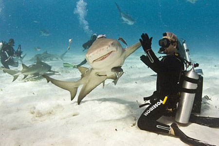 Köpek balığının yanına yaklaşmak her babayiğidin harcı değildir. Eski bir matador olan Eli Martinez, Karayip Denizi'nde dünyanın en korkulan hayvanlarından bir kaplan köpek balığıyla böyle poz verdi.