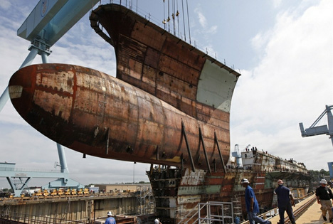 ABD'nin Virginia eyaletinde bulunan tershanede, yeni nesil uçak gemisi Gerald R. Ford, 2015 yılında kullanılmak üzere şekilleniyor.