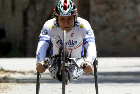 Formula 1 şampiyonasında geçirdiği kaza sonucu 2 bacağını birden kaybeden İtalyan pilot Alessandro Zanardi, yarış ruhunu hiç kaybetmedi. İtalyan el bisikleti takımına kabul edilen Zanardi, şampiyona için antremanlarına aralıksız devam ediyor.