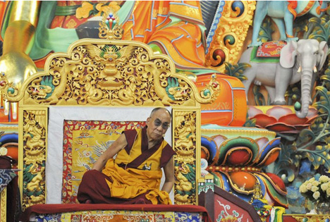 Tibetli Budistlerin ruhani ve siyasi lideri Dalay Lama, Yeunten Ling adlı yeni bir tapınağın açılışında konuşmasını yaptıktan sonra kendisine ayrılan bölümde yerini aldı.