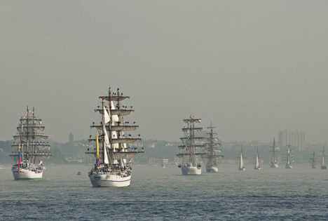 ABD'de donanma haftası kapsamında yapılan etkinliklerde, Hudson nehrinde yüzen gemiler objektife böyle yansıdı.