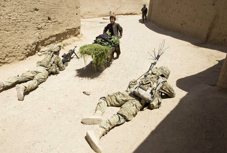 ABD askerlerin yoğun güvenlik önlemleri altında, Afganistan'daki bu köyde hayat devam ediyor.