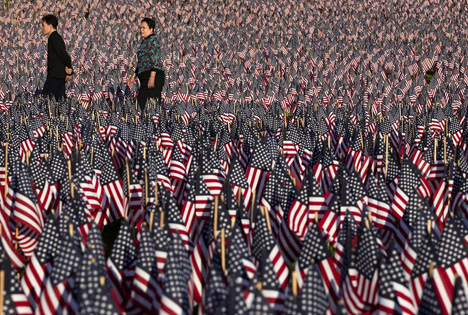 ABD'de iç savaşta yaşamını yitirilen askerler, Boston'da bulunan bir parkta 33 bin bayrağın arasında anıldı.