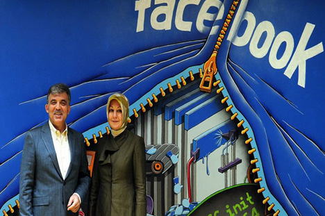 Cumhurbaşkanı Abdullah Gül ABD ziyaretinin ikinci ayağı olan San Fransisco'da Silikon Vadisi'nde Facebook merkeizini ziyaret etti. Cumhurbaşkanı Gül ve eşi Hayrunnisa Gül, Facebook afişinin önünde hatıra fotoğrafı çektirdi.