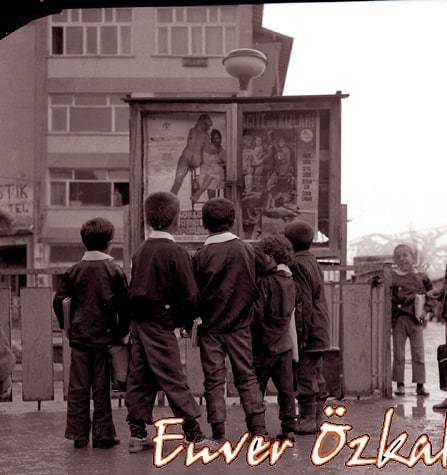 Hakkari çarşısındaki sinema afişi ve çocuklar. 1970'li yıllar