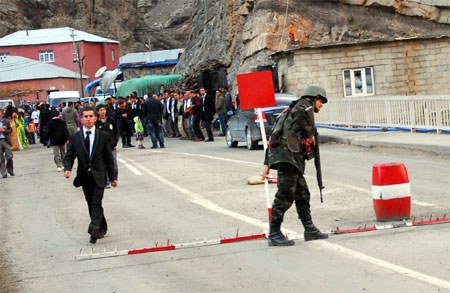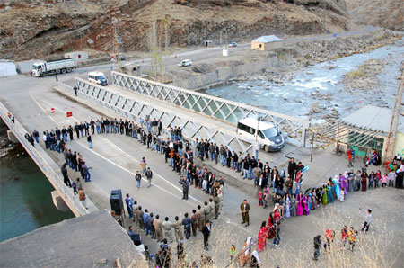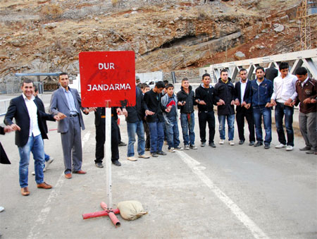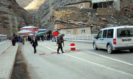 Köprüde bir taraftan davtliler Kürtçe şarkılar eşliğinde halay çekerken, diğer tarafta ise Jandarma, kontrol noktası olarak da kullanılan köprüden Hakkari-Şırnak istikametine gelen giden araçların kayıtlarını yaparak geçişlerini sağladı.