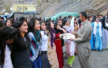 Şırnak'ın Uludere ilçesine bağlı Harput-2 köyünde Saddam Hüseyin'in adını taşıyan köprünün üzerinde bir düğün töreni...