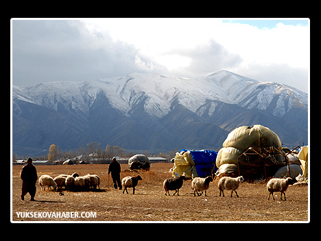 Yüksekova'da kış mevsiminin yaklamşmasıyla birlikte bölge sonbahardan kalma günlerini yaşıyor. Cilo dağlarının beyaza bürünmesi seyri güzel bir manzara oluşturdu. Fotoğraflar: Ahmet İzgi / Erkan Çapraz