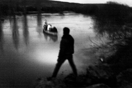 Moises Saman: "Soğuk ve gökyüzünün açık olduğu bir geceydi. Türkiye ile Suriye'nin İdlib bölgesini ayıran Asi Nehri'ni aydınlatan tek şey ay ışıklarıydı. Türkiye tarafında, ırmak kenarındaydım, böceklerin ve Suriye tarafında araba seslerinden başka hiçbir gürültü yoktu. Saniyeler sonra iki ışık ve bir traktörün gürültüsünü işittim. Suriyeli insan kaçakçıları bir çift ve küçük bebeklerini, Suriye'deki savaştan, güvenli Türkiye'ye kaçırıyorlardı. Şimdi geçmişe baktığımda bir ülkenin dünyanın gözleri önünde nasıl yok olduğunu görüyorum." (Moises Saman/2 Mart 2012)