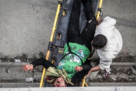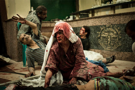 Narciso Contreras: "Halep'te günlerce süren çatışmalarda, zarar görmeyen bina ve mahalle kalmadı. Hananu bölgesinde bomba, bir ekmek fırını önünde kuyrukta bekleyen insanları vurdu. Ben patlamayı Şaar Hastanesi'nden işittim. Hastanenin girişinde bekliyordum. Doktorlar ve hemşireler yaralılara yardım etmek için oradan oraya koşuşturup duruyorlardı. Bir foto muhabiri için yer kalmamıştı. Ben de üst kata çıkarak, fotoğraflarını yukarıdan çektim. Bir kamyonetin içine konularak hastaneye taşınan yaralılar, yanık kokuyordu." (Narciso Contreras/23 Ekim 2012)