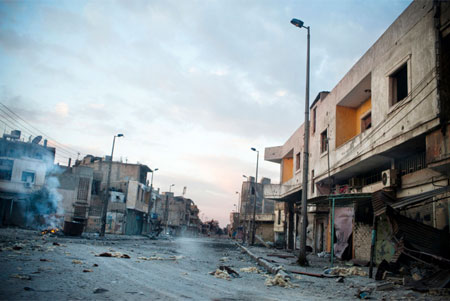 William Daniels: "Suriye'de 9, kuşatma altındaki Bab Amr'daki 5'inci günüm. Marie Colvin ve Remi Ochlik'in öldürüldüğü saldırı sonrasında artık hiçbir zaman fotoğraf çekmeyeceğim hissine kapıldım. Arkadaşlarımız öldürülmüştü ve her şey çok anlamsızdı. Bu fotoğrafı çektiğimde ise yeniden foto muhabiri oldum. Bab Amr'da günlerce devam eden çatışma birkaç saatliğine durmuştu. Bu fırsatı kullanarak Remi ve Marie'nin cansız bedenlerine ve geride kalan eşyalarına ulaşmaya çalıştık. Ölüm sessizliğindeki Bab Amr sokağında, keskin nişancı tehdidi altında arabayla seyir halindeyken, bu fotoğrafı çektim. Bab Amr çatışma sonrası bu hale gelmişti." (William Daniels/Time/24 Şubat 2012)
