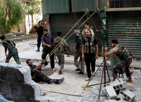Asma Waguih: "Halep'te günlerce süren çatışmalar sonrasında her taraf harap olmuştu. Çatışma bölgelerini gezerken birden bire bu isyancılar karşıma çıktı. Kendi yaptıkları bir düzenekle, el yapımı bir bombayı atmaya çalışıyorlardı. Kurşun sıkıntısı çeken isyancılar, bazı atölyelerde el yapımı bombalar yapıyorlar. Gazetecilerin bu atölyeleri görmelerine ise izin vermiyorlar." (Asmaa Waguih/26 Ekim 2012)