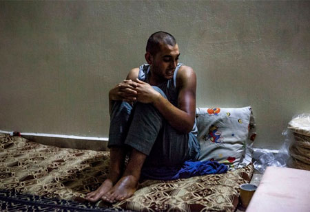 Bryan Denton: "Özgür Suriye Ordusu komutanına göre, Ebu Halil, Halep'te Esad'ın paramiliter örgütü Şahiba'nın üyesi. İsyancılar, Ebu Halil'in Halep ve çevresinde terör estirdiğini iddia ediyor. İddiaya göre Ebu Halil, 6 kişiyi öldürdü ve Halep Üniversitesi'nde bir kız öğrenciye tecavüz etti. Halil'e suçlamaların gerçek olup olmadığını sordum ancak işkence ve dayak sonrası akli dengesini kaybetme noktasına gelmişti. Ona gökyüzünün sarı olduğunu söylesen, seninle aynı fikirde olduğunu söylerdi. Ben bu fotoğrafı çektiğimde, bir grup isyancı Halil'in bulunduğu odaya giriyordu." (Bryan Denton/New York Times/ 14 Ağustos 2012)