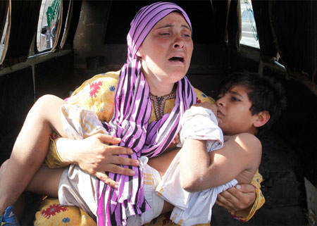 Sebastiano Tomada: "Roket saldırısında evleri vurulan bu çocuğun, babasıyla birlikte sağ kurtulan tek kişi olduğunu anlayacak yaşta olduğunu hiç sanmıyorum. Saldırıda annesiyle birlikte, ailenin diğer iki üyesi de yaşamını yitirdi. Hastaneye getirilen bu minik yavru, "Ellerime bulaşan bu kırmızı sıvı ne? Ne oldu bana?" der gibi bakıyor. Odadan ayrıldığımda, doktorlar hızla içeri girdi. Köşede, gözleri dolmuş, yaralı babayı gördüm. Göz göze geldiğimizde, sağ elini yukarı kaldırarak gökyüzünü gösterir gibi "Allah"ı yardıma çağırdı. Hastane, babasını yardıma çağıran bu küçük çocuğun çığlıklarıyla yankılandı. Kendimi o günkü kadar hiç çaresiz hissetmemiştim. O gün gördüklerim karşısında bugün bile nasıl tepki vereceğimi bilemiyorum. O günü hala yaşıyorum." (Sebastiano Tomada/3 Ekim 2012)