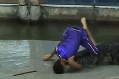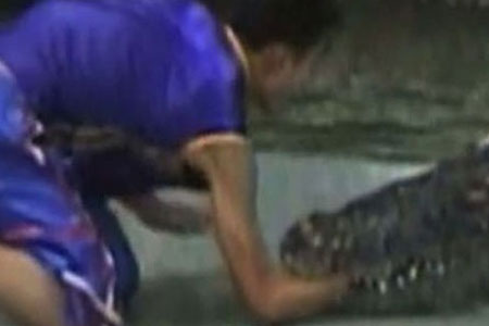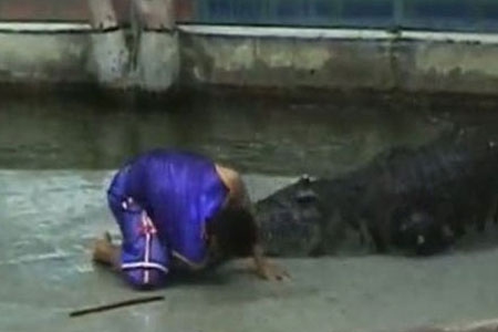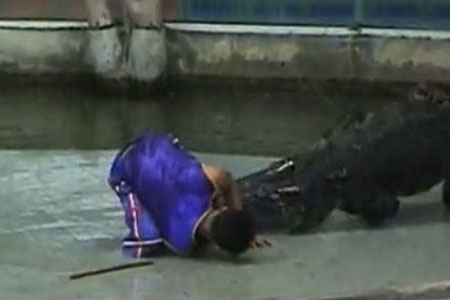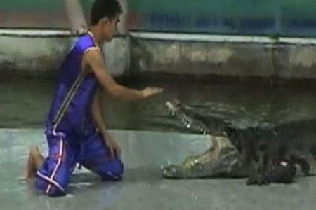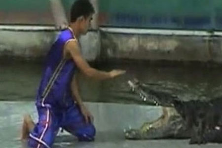 Özellikle vahşi hayvanlarla yapılan gösteriler turistlerin ilgisini çekmekte ve bu nedenle de gösteri sınırının dozu bazen aşılmakta... Asya'da bir hayvanat bahçesinde izleyenlere şov yapmaya çalışan hayvan terbiyecisi timsahla şaka olmayacağı gerçeğini elini kaptırarak öğrendi..