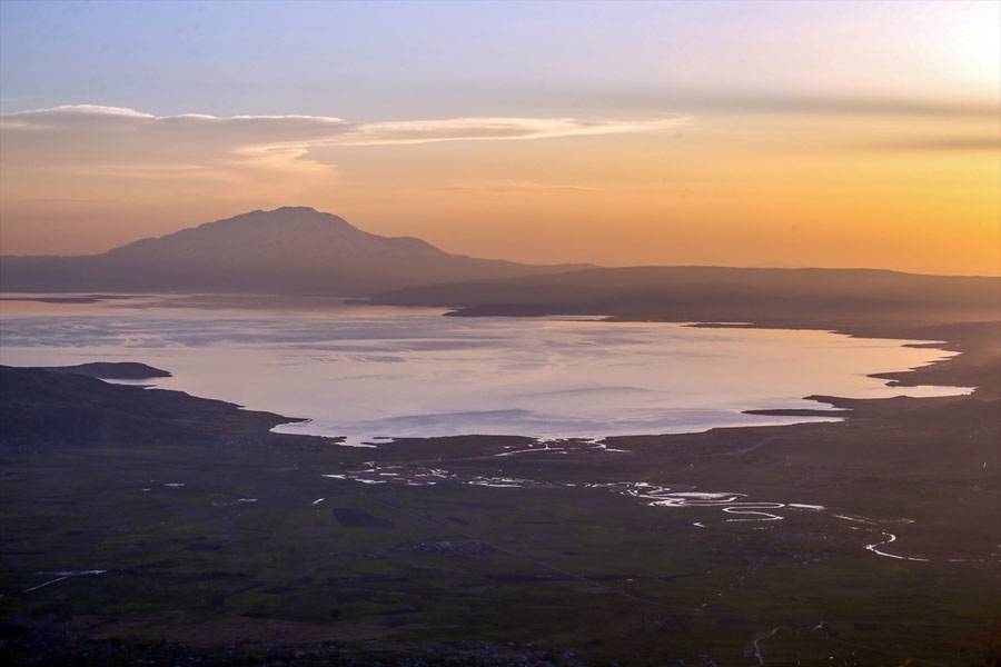 Fotoğrafta Van Gölü ve kıyısındaki Süphan Dağı görülüyor.