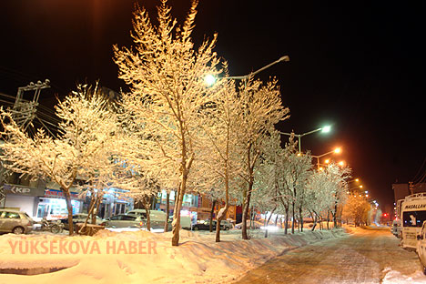 Yüksekova'da kar yağışı hayatı olumsuz yönde etkilerken yağışın durması ile de seyri güzel manzaralar oluştu...