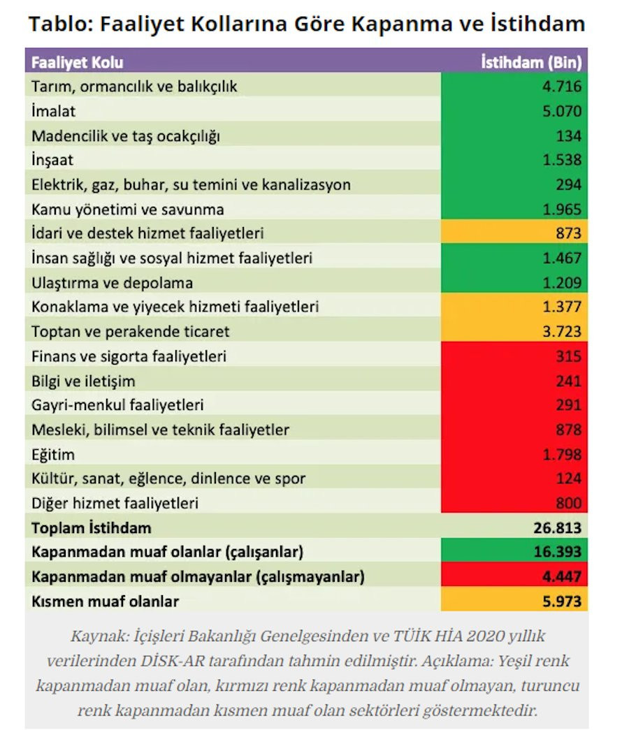 - Kapanma kapsamındaki sektörlerde çalışanlar sadece yüzde 17 (4,4 milyon) civarında.