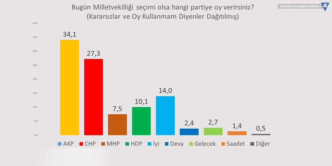 Araştırmaya göre, oyların dağılımı -kararsızlar ve oy kullanmayacaklar dağıtılınca- şöyle: