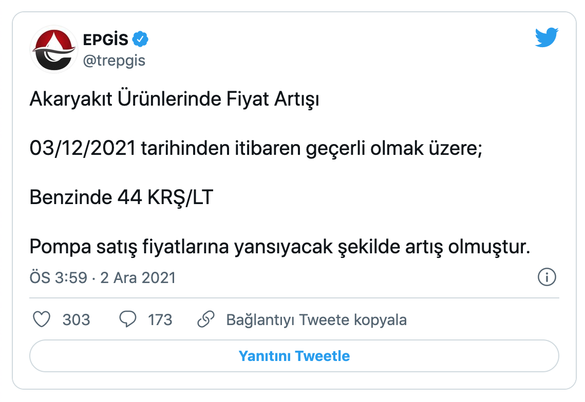 Enerji Petrol Gaz İkmal İstasyonları İşveren Sendikası, benzinin litresine 44 kuruş zam geldiğini duyurdu. Zam pompa fiyatına yansıyacak ve bu geceden itibaren geçerli olacak.
