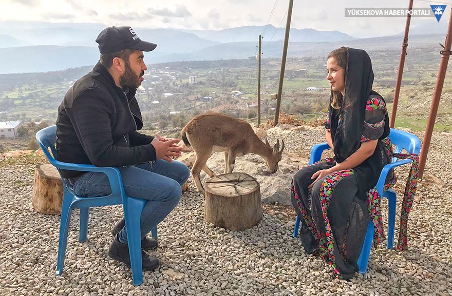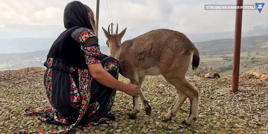 Hakkari'nin Derecik ilçesine bağlı Yeşilova (Navberoja) köyünde yaşayan Rojan Dinç, yaklaşık 2 yıl önce kardeşlerinin arazide bitkin halde bulduğu yavru dağ keçisine gözü gibi bakıyor.