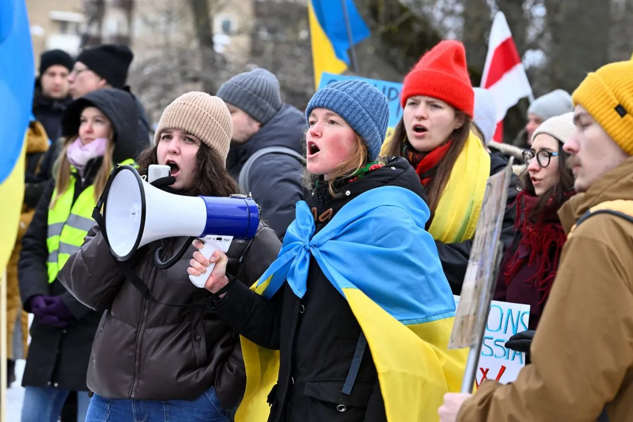 İsviçre'nin başkenti Bern'de yüzlerce savaş karşıtı eylemci, Ukrayna bayrakları ile beraber "Ukrayna'ya barış" ve "Savaşa hayır" sloganları attı.