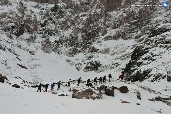 Türkiye Dağcılık Federasyonu Hakkari İl Temsilcisi Naci Ertunç öncülüğünde bir araya gelen 17 dağcı hafta sonunda karla kaplı Cennet Cehennem vadisinin büyüleyici manzarasında güzel bir vakit geçirdiklerini dile getirdiler.