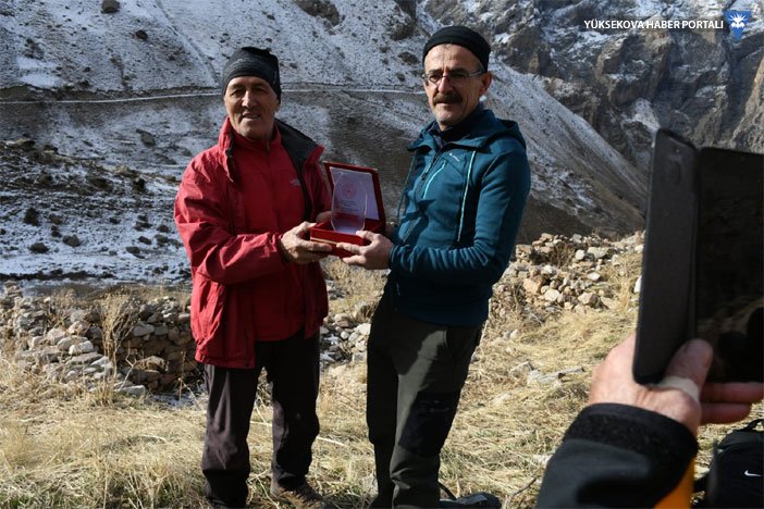 Plaketi Dağcı Zeki Çiftçi'den alan Türkiye Dağcılık Federasyonu (TDF) Hakkari temsilcisi Naci Ertunç, Gençlik Spor İl Müdürü Emin Yıldırım'a teşekkür etti.