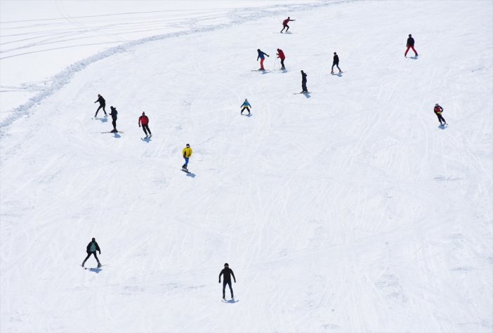 Sokağa çıkma kısıtlamasının olmadığı ilk cumartesi merkeze giden vatandaşlar, snowboard ve kayak yapıp kızakla kayarak keyifli anlar yaşadı.