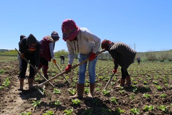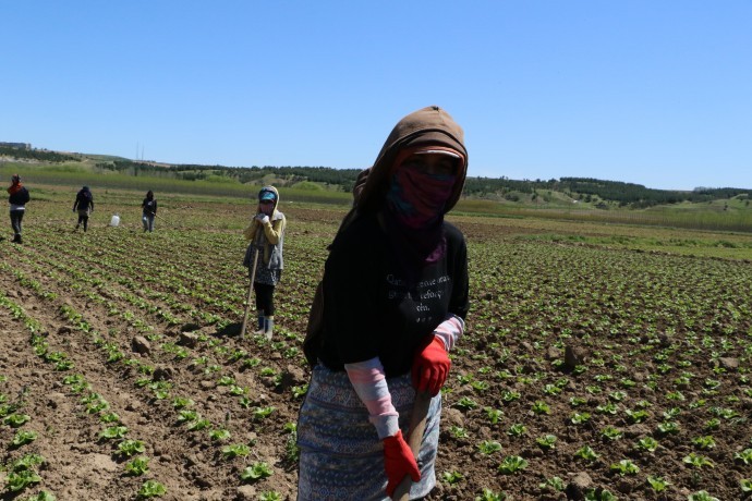 Önceleri pamuk tarlasında çalıştığını aktaran Albay, 3-4 yıldır marul tarlasında çalıştığını kaydetti. “Kendimi bildim bileli sürekli tarla işlerini yapıyorum” diyen Albay, çalışma koşullarını ise şöyle anlattı: “Çapa işinden şimdi aldığımız ücret 90 lira. Saat 07.00’de tarlada olmamız gerekiyor. 09.30’da kısa bir süre mola veriyoruz, 10.00’da tekrar iş başı yapıyoruz. Saat 12.00’de 15 dakika mola veriyoruz. Sonra tekrar çalışıyor ve 13.00’da tekrar oturuyoruz. 16.00’da tekrar 5 dakika mola veriyoruz, 17.00’da paydos oluyor. Karşılığında ise 90 lira alıyoruz. İstanbul’da marulun satış fiyatı 45 lira olmuş ama biz tarlada 100 liraya bile çalışmıyoruz. Bu hak mıdır?” diye sordu.