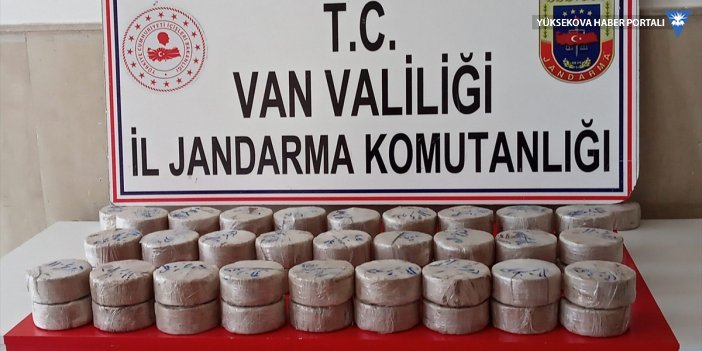 Van'ın İran sınırındaki Çaldıran ilçesinde iki şüphelinin araziye gömdüğü çantada 29 kilogram eroin bulundu.