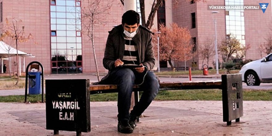 Diyarbakır Cumhuriyet Fen Lisesi'nde matematik öğretmeni olan Mehmet Aydın, koronavirüs tedavisi gören babasına refakatçilik ederken, aynı zamanda öğrencilerini de ihmal etmeyip hastane bahçesindeki banklarda uzaktan eğitime katılıyor.