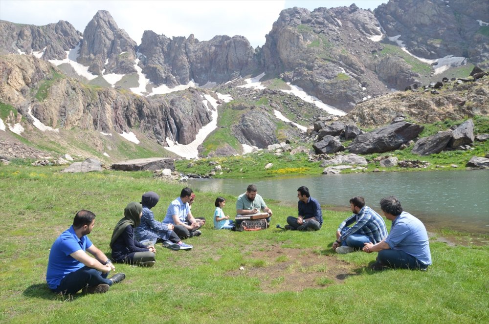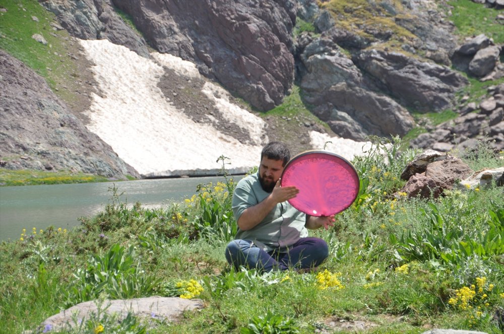 Cilo Dağları'ndaki Sat Buzul Gölleri'nde, sanatçı Sedat Anar, erbane ve santur dinletisi sundu.