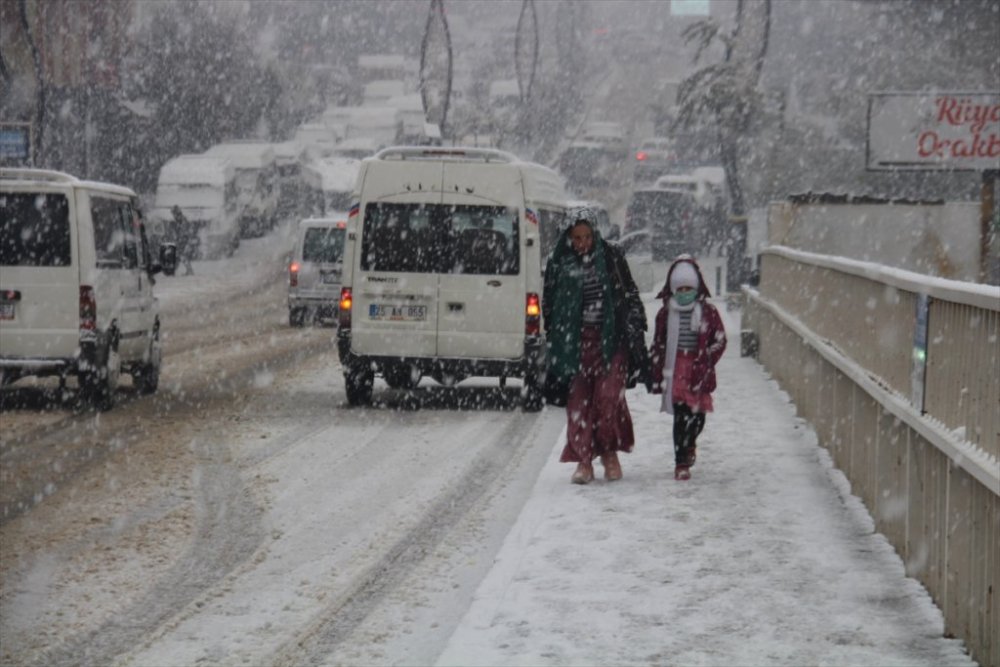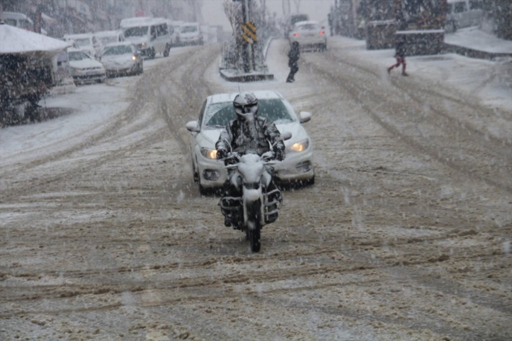 İlçede sabah saatlerinde başlayan ve aralıklarla etkili olan kar, hayatı olumsuz etkiledi.